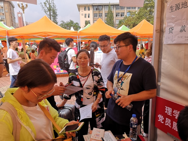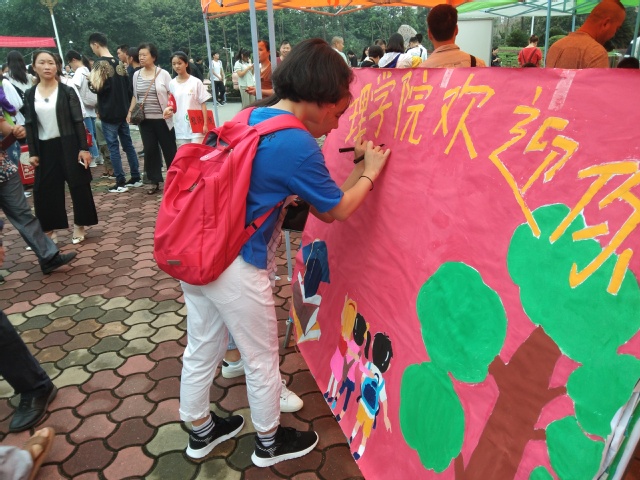 随着新同学的陆续到来,志愿者们在迎新岗位忙碌工作着。其中,迎接新生、寄存行李、报道注册等程序有条不紊地进行,在老师和志愿者的共同努力下,真正做到:热情服务、沟通无阻。