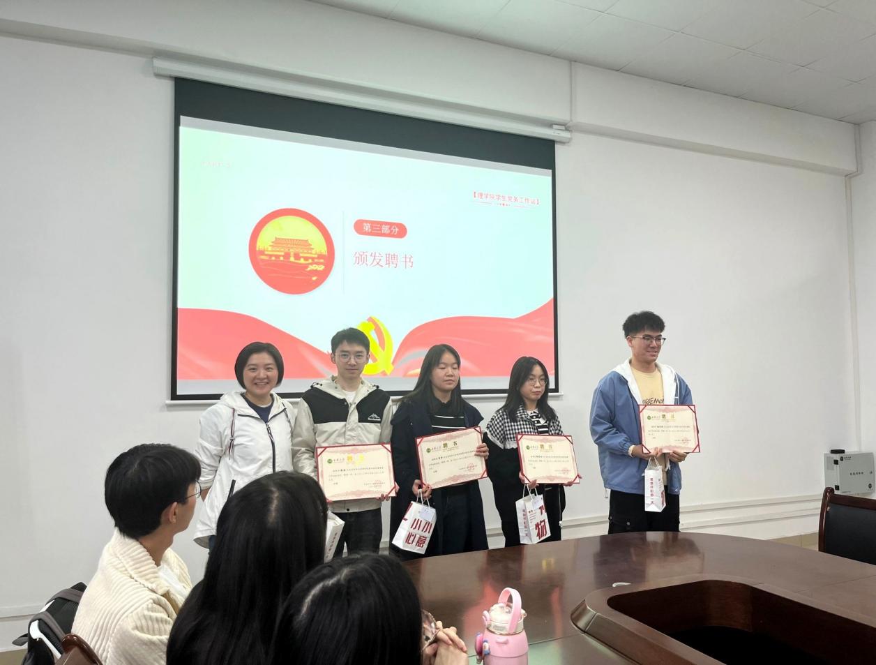 伟德国际1946学生党务工作站指导老师王燕晶为上一届工作站成员颁发聘书并合影留念。
