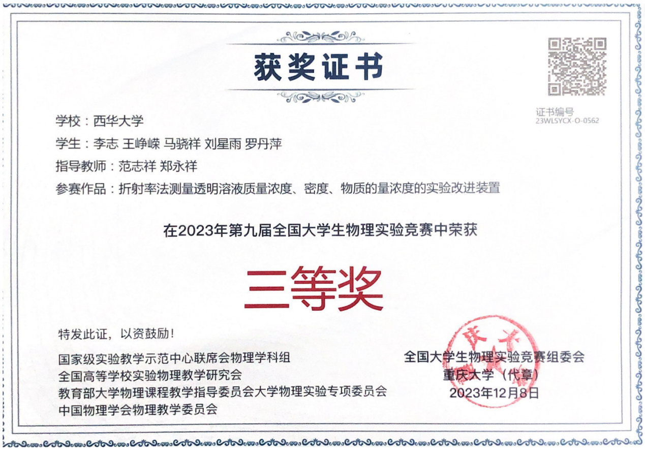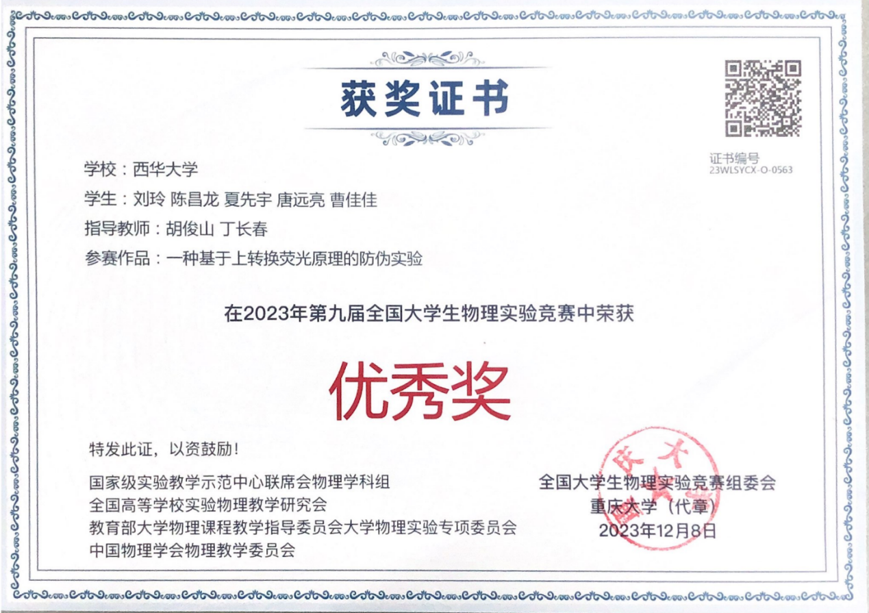 获奖证书