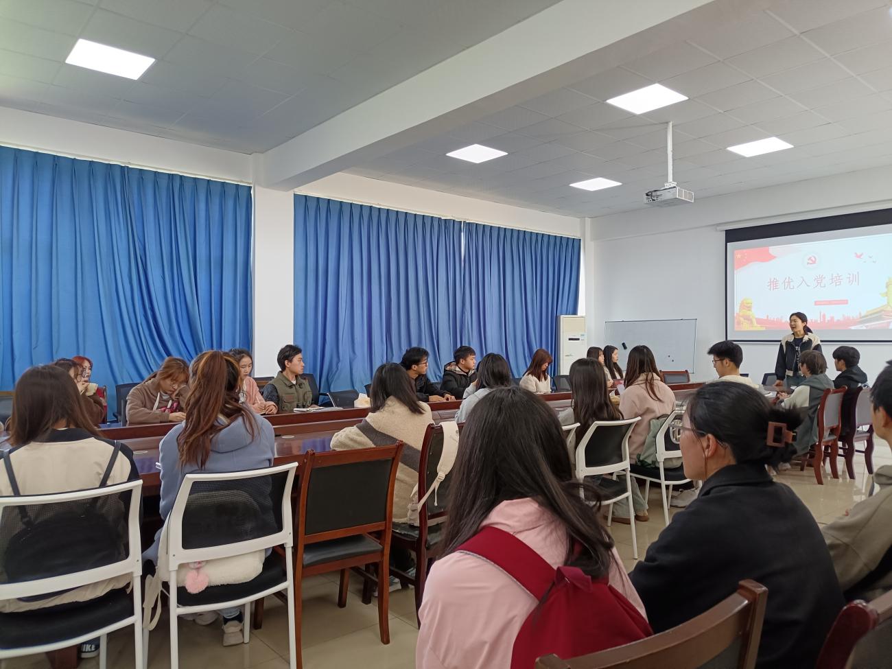 随后,团委组织部部长丁伟刚首先向团支书培训“推荐优秀共青团员作党的发展对象”(以下简称 “推优”)工作。培训中强调 “推优”要坚持党章规定的党员基本条件,准确理解和掌握党员标准的时代特征,真正把团员中的优秀分子推荐给党组织,要求各支部团支书在“推优”工作中严格把好“入门关”,且必须严格按照程序进行。其次向各位团支书指导本学期团日活动的学习主题,要求各团支部认真开展,提高团日活动的教育效果。