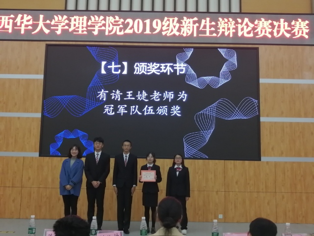本次辩论赛围绕“年少成名是利大于弊还是弊大于利”主题展开。正方支持年少成名弊大于利,由李沁时、樊铠溢、陈宇翔、龙沁岚四名同学上台答辩。反方支持年少成名利大于弊,由杨玲、江星宇、赖鑫悦、彭浩东四位同学上台答辩。在裁判陈述完比赛规则后,伴随着紧张激烈的答辩氛围,双方开启一辩、二辩、三辩,双方陈述己方观点,再向对方提出问题,过程中,同学们思维清晰,语言严谨。在紧张激烈的答辩过后,双方最后陈述总观点并回答观众提问。经过激烈角逐,反方获得最终胜利,答辩队员依次上台领奖。