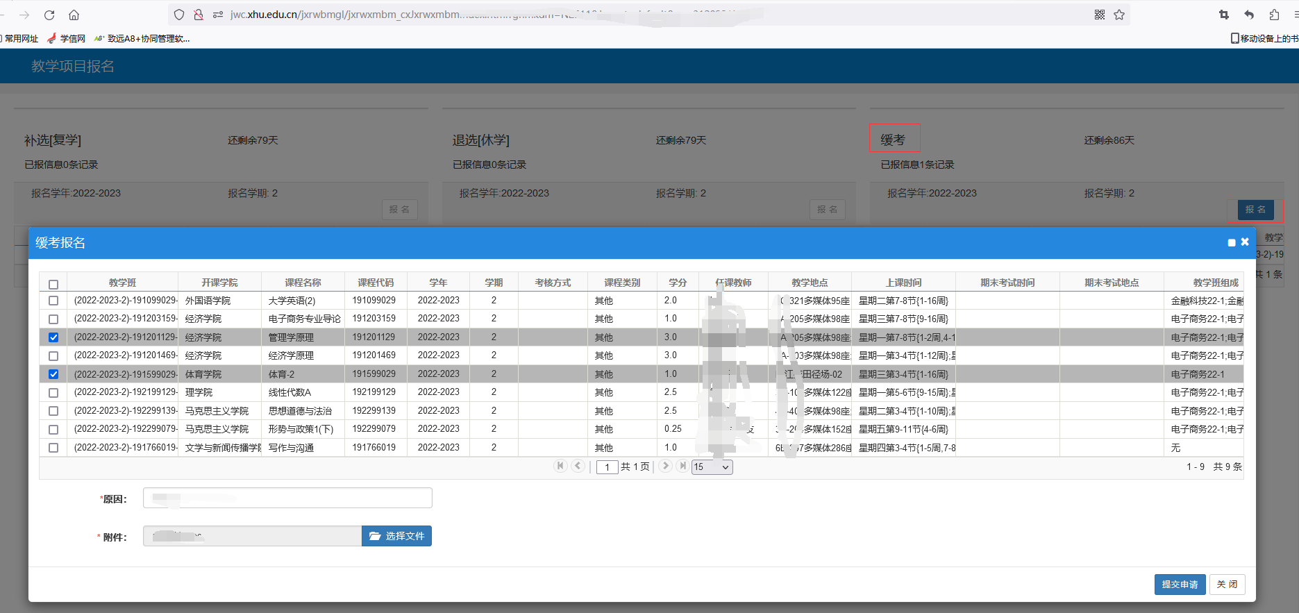 注意事项:1、只有首次选学的理论课程才可提交缓考申请。