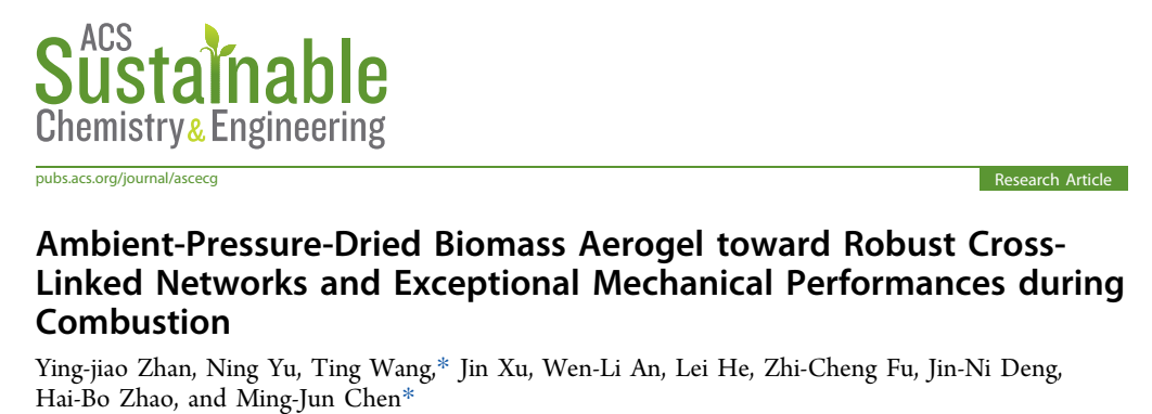 此外,创新地利用聚合物原位聚合三聚氰胺甲醛树脂的方法,成功实现兼具强度和韧性的三聚氰胺甲醛树脂的合成,实现无溶剂置换的常压干燥法制备高强度本征阻燃的三聚氰胺甲醛树脂气凝胶材料。其发表在材料科学领域主流刊物International Journal of Biological Macromolecules (中科院1区TOP,IF: 7.7)上, 该工作第一作者为伟德国际1946汪婷副教授和伟德国际19462024届化学与生物医药硕士徐津,通讯作者为四川大学赵海波教授和陈明军教授,伟德官网为第一单位 (见图3)。