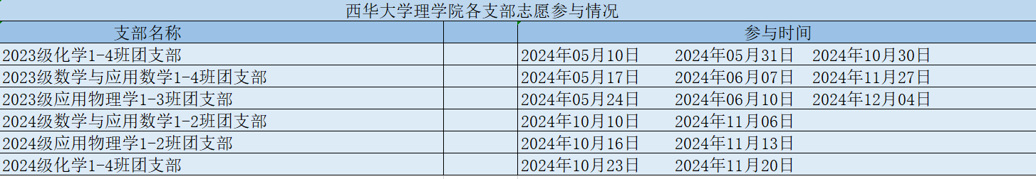 2024年8月2日-8月5日,23级物理专业1-3班团支部协助学校进行物理竞赛服务工作。9月10日,伟德国际1946 22级和23级同学部分同学参与迎新志愿活动。10月23日,24级化学专业1班和2班团支部进行教职工趣味运动会协助工作。10月30日进行会议室整理等。
