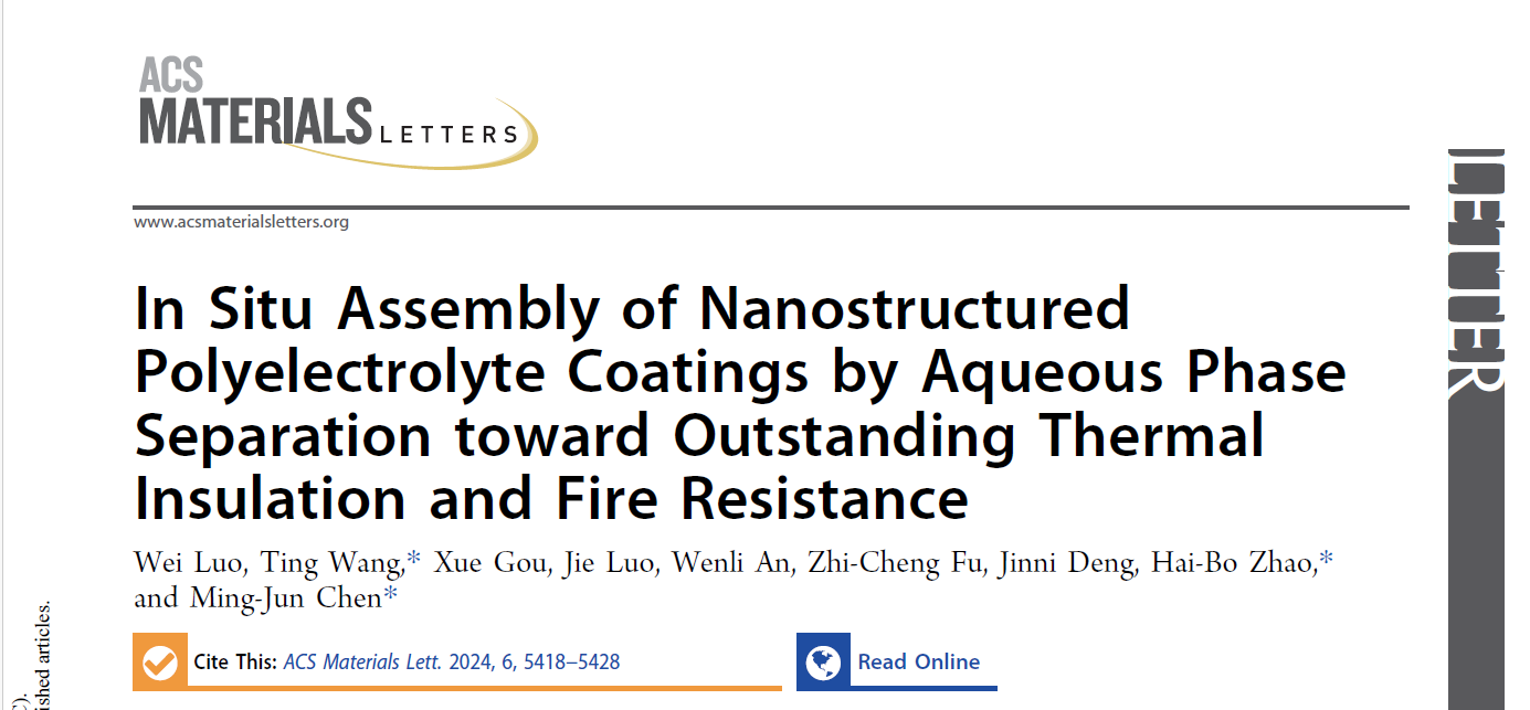 近日,伟德国际1946功能高分子材料绿色制备与循环利用研究团队在阻燃保温涂层研究上取得新进展。相关成果发表在材料领域著名刊物ACS Materials Letters(中科院1区TOP,IF: 9.6),且入选当期封面文章进行亮点介绍。第一作者为伟德国际19462024届材料科学与工程专业硕士研究生罗伟,通讯作者为伟德国际1946汪婷副教授、陈明军教授,以及四川大学赵海波教授,伟德官网为第一单位。