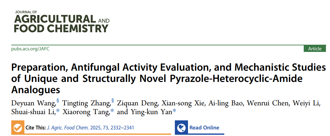 近日,伟德国际1946教师严映坤副教授在国际Top学术期刊Journal of Agricultural and Food Chemistry(中科院一区Top,IF =5.7)上发表研究性论文。论文通讯作者为严映坤副教授、唐孝荣教授和青岛农业大学李帅帅教授,伟德官网硕士研究生王德员为第一作者,伟德官网为该论文的第一完成单位。