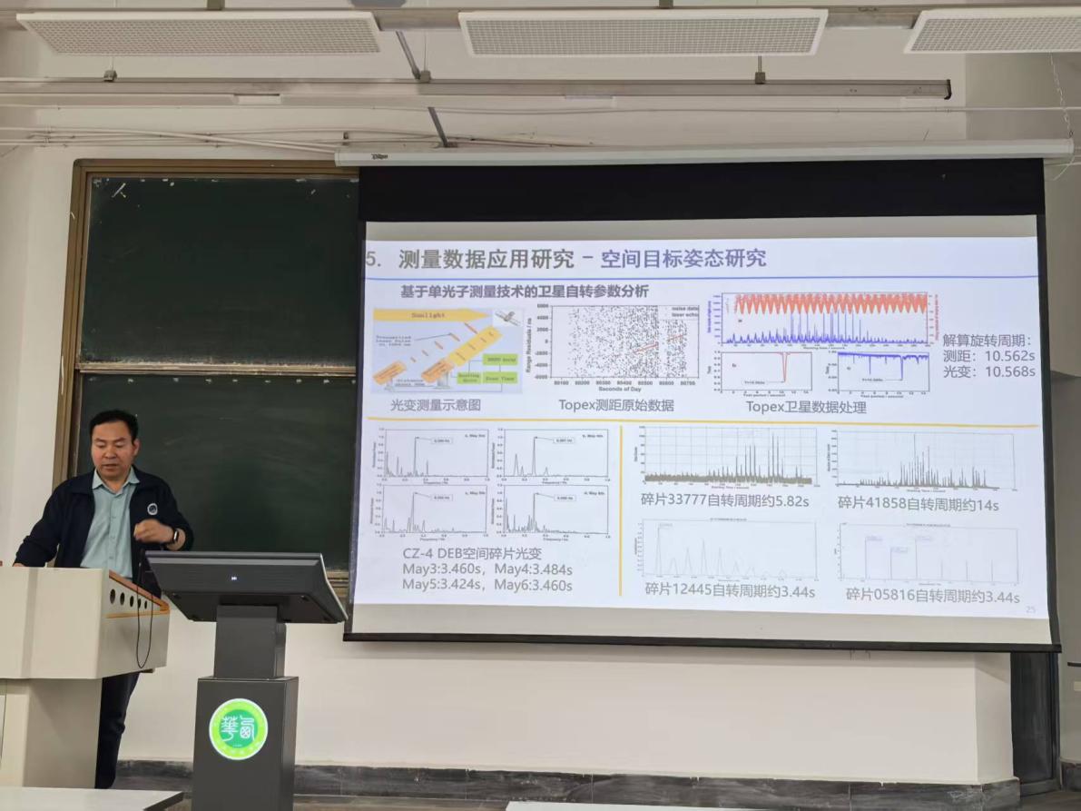 报告会上,李语强研究员系统介绍了我国卫星激光测距技术的最新进展。作为国内首次实现月球激光测距的团队领衔人,他结合团队二十余年科研实践,深入剖析了高精度激光测距在空间目标监测、地月系统动力学研究等领域的突破性应用,并展望了该技术在深空导航、空间碎片预警等方面的战略意义。针对国际竞争态势,他还分享了我国自主研发的千赫兹级激光测距系统核心技术突破的攻关历程。