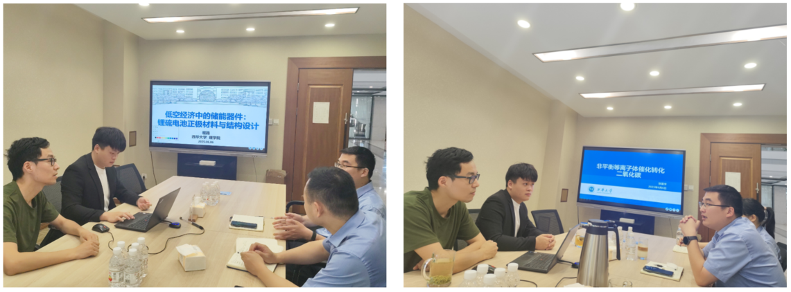访问期间,程路老师和张笛宇老师分别围绕各自研究领域,作了题为《低空经济中的储能器件:锂硫电池正极材料与结构设计》与《非平衡等离子体催化转化二氧化碳》的专题报告。
