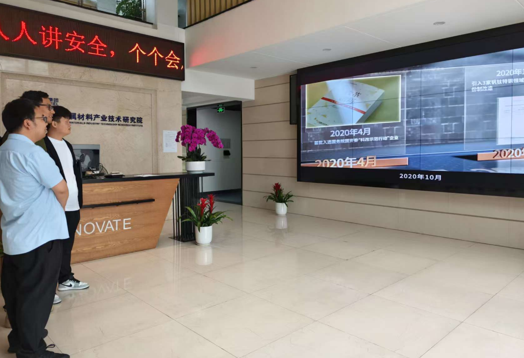 图2 秦治峰博士向两位老师介绍成都先进金属材料产业技术研究院股份有限公司概况