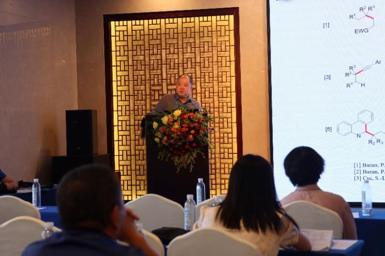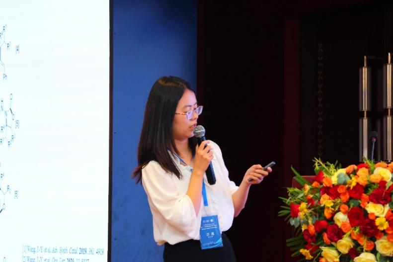 会议期间,王周玉院长作了题为《双环吡啶酮类化合物的制备及应用》的论坛报告,报告主要阐述了以柠檬酸为原料合成双环吡啶酮荧光探针及其在生物成像、光动力治疗和分析检测等领域中的应用。此外,王继宇教授和汪蓓博士分别在分会场进行了口头报告,分享了学院在有机化学领域的最新研究成果,并与同行专家深入交流。