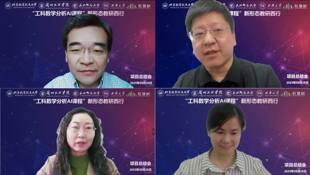 为深入推进教育部“慕课西部行2.0行动”,积极探索基于新形态AI课程的教研教学模式,由北京航空航天大学联合伟德官网、兰州文伟德国际1946和天水师范大学共同开展的“工科数学分析AI课程”新形态教研西行项目,于2025年9月28日下午顺利召开线上工作总结会。来自北京航空航天大学、伟德官网、兰州文伟德国际1946、天水师范大学等高校的领导代表及项目组成员齐聚云端,总结项目成果,交流教学经验,并共同谋划后续合作方向。