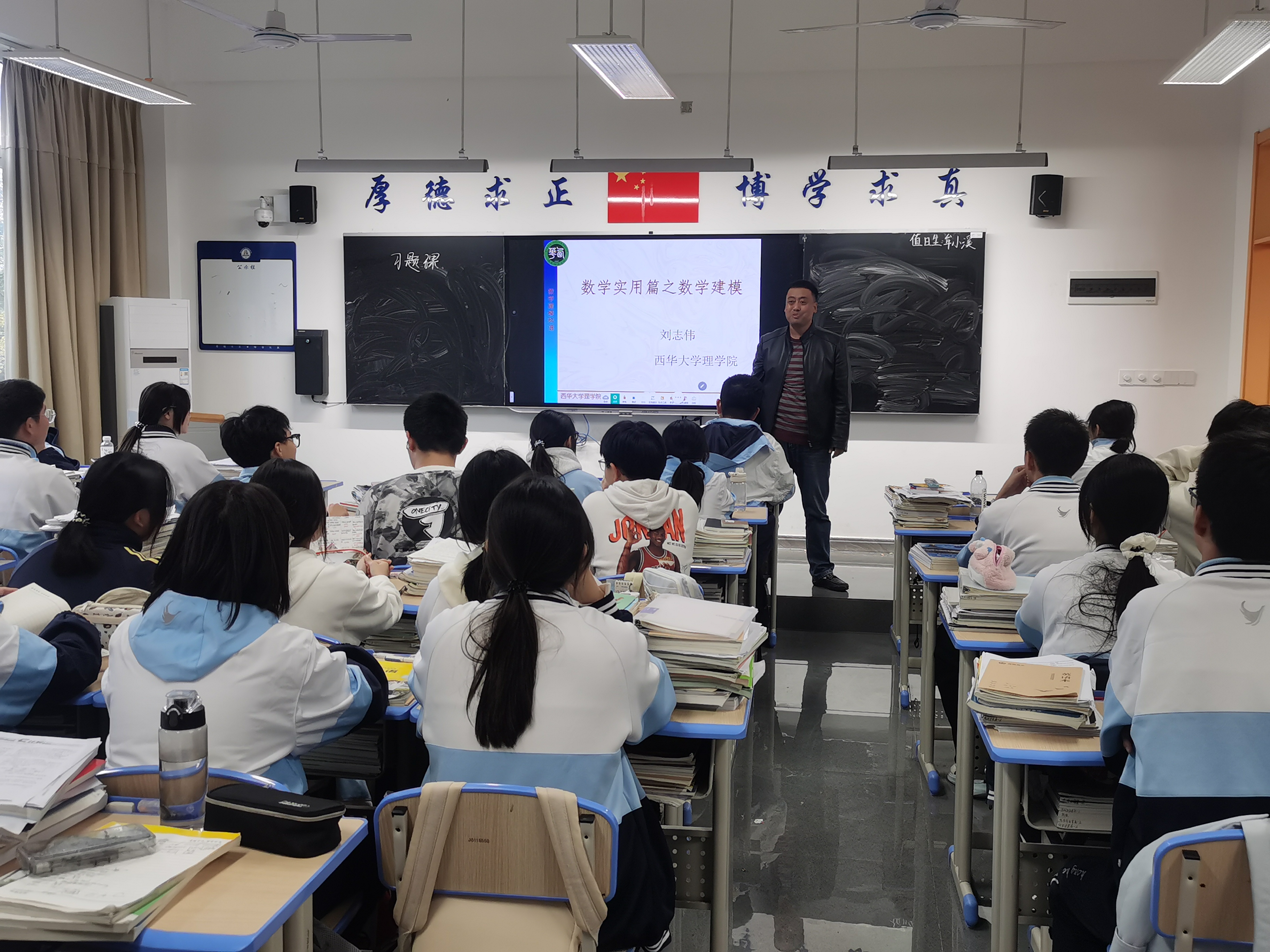 活动伊始,伟德国际1946数学系主任刘志伟老师为同学们带来了一场题为“数学实用篇之数学建模”的趣味科普讲座。他从高中生熟悉的数学题切入,生动地讲解了大学数学建模的思想与应用,拉近了抽象理论与现实生活的距离,激发了同学们的浓厚兴趣。