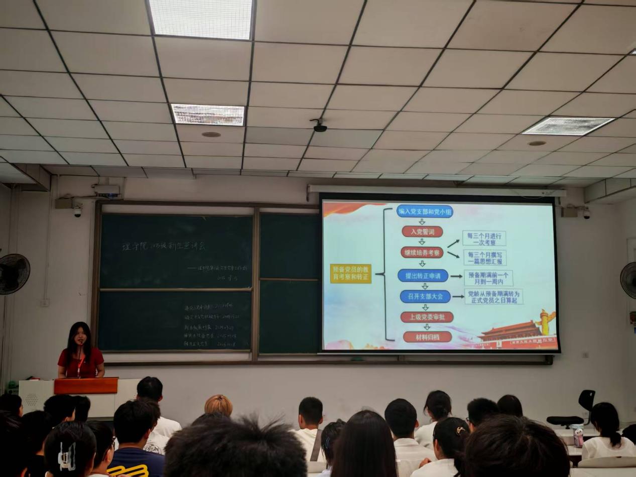 会上,学院党建工作站学生负责人首先系统介绍了工作站的部门设置、职能分工及历届成员的发展情况,帮助新生了解这一重要的学生党建平台。随后,详细说明了各专业学生党支部的组织概况,并重点解读了大学期间从申请入党到转正的完整流程与具体要求,为新生指明努力方向。在经验分享环节,优秀学生党员代表结合自身经历,生动讲述了如何在专业学习、科研创新与社会实践中践行党员标准、发挥先锋作用,以真实鲜活的榜样力量激发了新生的向党组织靠拢的热情。