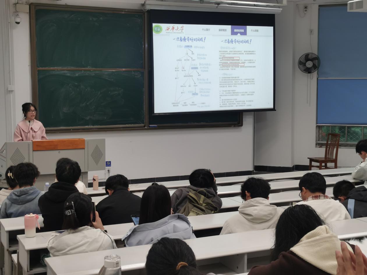 分享会邀请了三位在专业学习和科研实践中表现优异、并已成功保送攻读硕士学位的高年级学生代表作为主讲嘉宾。他们结合自身经历,围绕专业的核心课程学习方法、时间管理与效率提升、科研项目入门与参与、保研政策解读与院校选择、面试准备与心态调整等方面,进行了系统而详实的分享。学姐们真诚生动的讲述,为在场同学提供了宝贵的“第一手”经验和极具参考价值的发展路径。