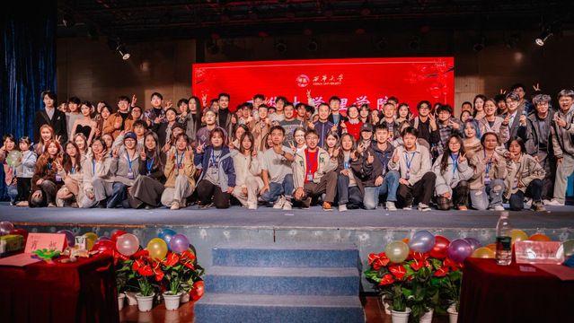 图4. 校友与师生共同观看文艺晚会并合影留念