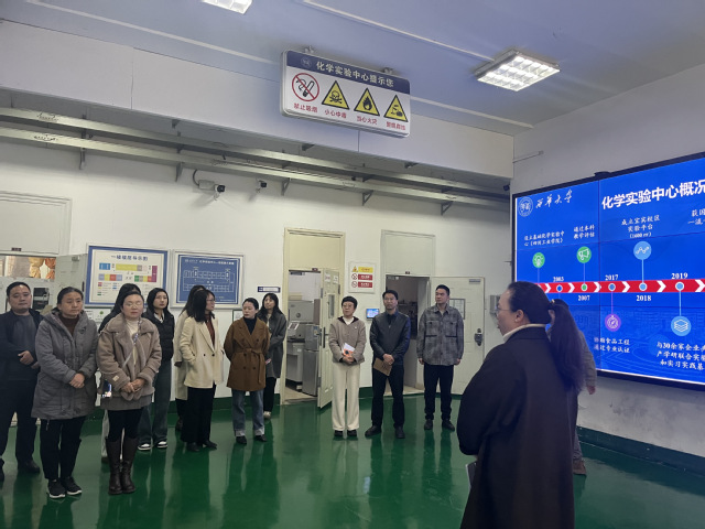 活动伊始,在伟德国际1946党委书记肖帆的带领下,三方党员共同走进化学实验中心。化学实验中心主任律娅婧带领党员们依次参观了各类功能实验室、大型仪器设备区及安全管控中心,详细了解化学实验中心各个科研平台、精密分析仪器等科研设备的配置、使用及维护情况,直观感受化学学科在人才培养、科研创新中的硬件支撑实力。