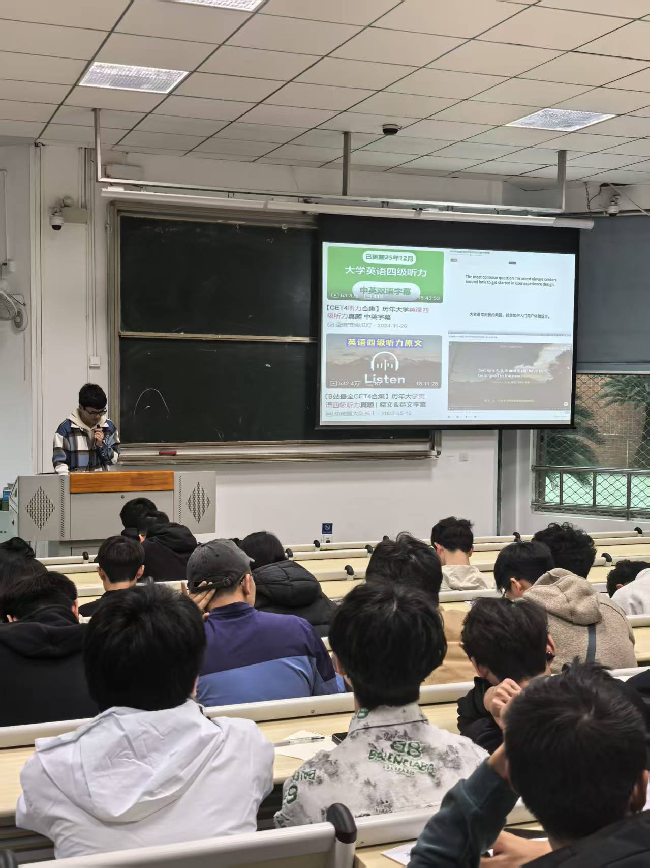 为进一步激发2025级本科生的英语学习热情,提升大学英语四级考级率,营造积极进取的学习氛围,伟德国际1946于3月12日在4A101组织召开大学英语四级经验分享会。本次分享会特别邀请了在2025年12月大学英语四级考试中取得优异成绩的四位2025级同学——钟昊城、龙维、唐翔龙、干乐聪作为主讲人,为同学们传授宝贵经验,2025级本科生参加。