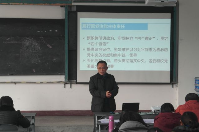 最后,张岩书记进行年度工作汇报。他主要从履行管党治党主体责任、总要求、领导班子建设、“两学一做”常态化制度化、党风廉政建设、组织建设、宣传工作、党员组织关系排查、安全稳定工作、学科、科研建设、教学工作、师资队伍建设、创收工作、工会工作等方面进行述职。在学校党委、领导和学院党委的指导下,全体教职工的支持下,伟德国际1946在党建工作上取得了一系列成绩,十九大精神宣传被评为优秀,荣获党校培训班综合测评一等奖,在学校、学院新闻中心投稿多篇,新媒体招生宣传成效显著,获学校表扬等。张书记提到,2018年学院将继续做好抓党建求发展工作,将党风廉政建设作为全面从严治党的重中之重。把“两学一做”常态化制度化,落实到位。注重思想政治教育,创新教育教学思路,抓好科研教学工作,加强制度建设与人才培养,切实发挥学校教书育人的场地作用。