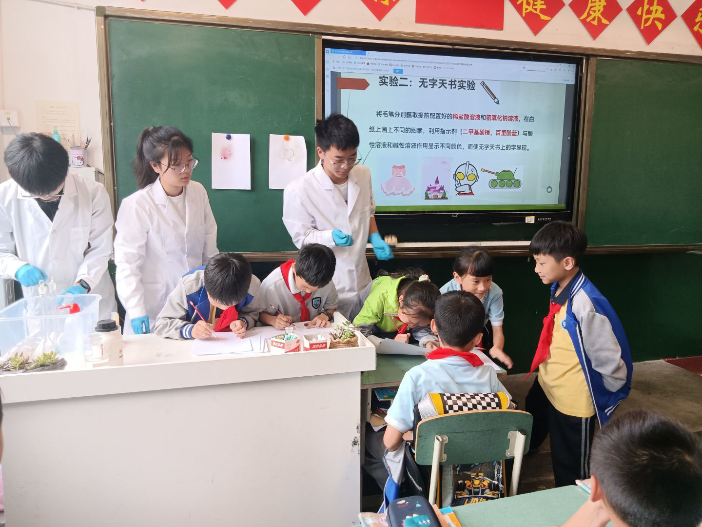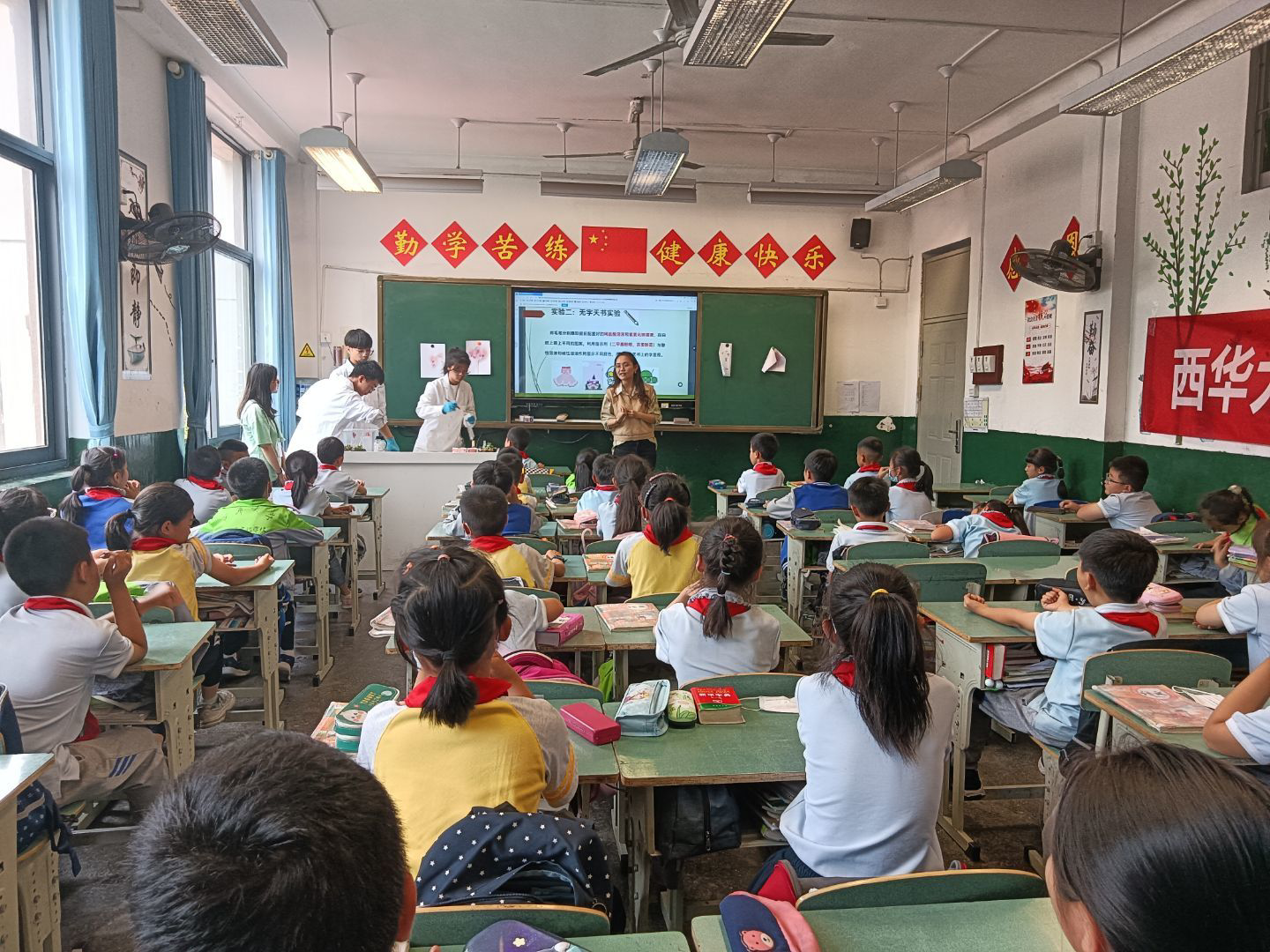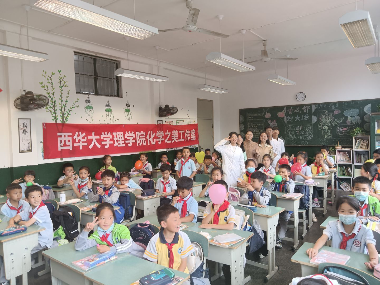 伟德国际1946于5月27日下午2点,在伟德官网附属实验学校三年级教室,开展题为“生活中的趣味化学”科普活动。本次活动由伟德国际1946化学系承办,院化学之美工作室杨慧老师与化学系2021级本科生代表担任宣讲团,伟德官网附属实验学校小三班班主任及全体学生参加。