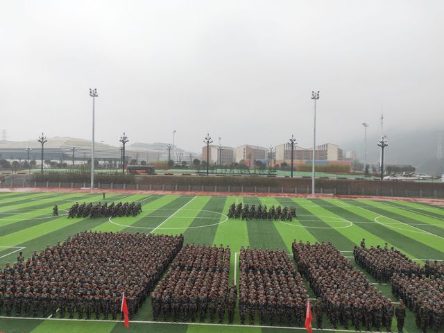 2018年11月16日上午9:00,2018级第三批军训结业典礼在伟德官网宜宾研究院田径场举行。承训部队首长火箭96721部队副参谋长郑学军、管理科动员参谋王磊,伟德官网党委武装部部长陈召平、副部长蒋策、学生工作部副部长万志昂,宜宾研究院的各位领导,本次军训各个学院的负责人,承训部队的教官及两千余名同学参加了结业典礼。本次典礼由党委武装部副部长蒋策主持。