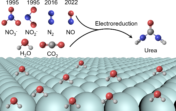 尿素不仅是农作物生长过程中最重要的氮肥,也是生产重要化工产品(例如脲-三聚氰胺-甲醛树脂,脲甲醛和巴比妥酸盐等)的关键化学原料。目前,传统的尿素合成工艺存在反应条件苛刻,环境污染以及对设备要求高等问题。因此,亟待研发反应条件温和,绿色可持续的尿素合成技术以替代传统的两步法合成尿素工艺。通过电化学路径将环境中的温室气体CO2和硝酸盐水体污染物共还原为具有更高附加值的尿素,对实现碳中和、碳/氮循环利用、间歇式能源有效存储以及缓解环境污染等问题具有重要意义。