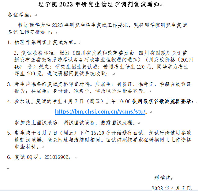 伟德国际19462023年研究生物理学调剂复试通知(20230407).docx