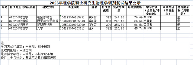 伟德国际19462023年硕士研究生物理学调剂复试结果公示