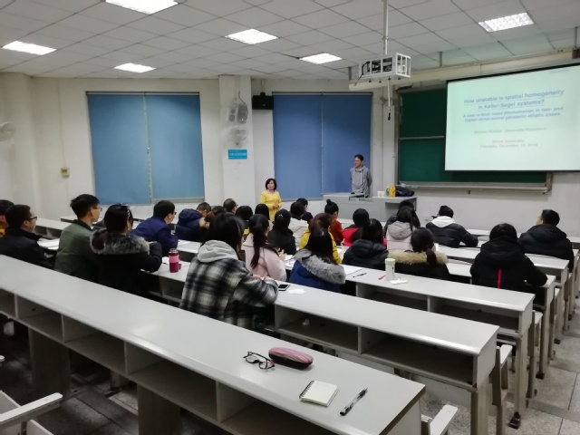 报告会上,Michael Winkler教授详细回答了师生提出的问题,他鼓励同学们要静下心研究学术,戒骄戒躁。此次报告会也使同学们对Keller Segel系统更加了解,收获颇丰!