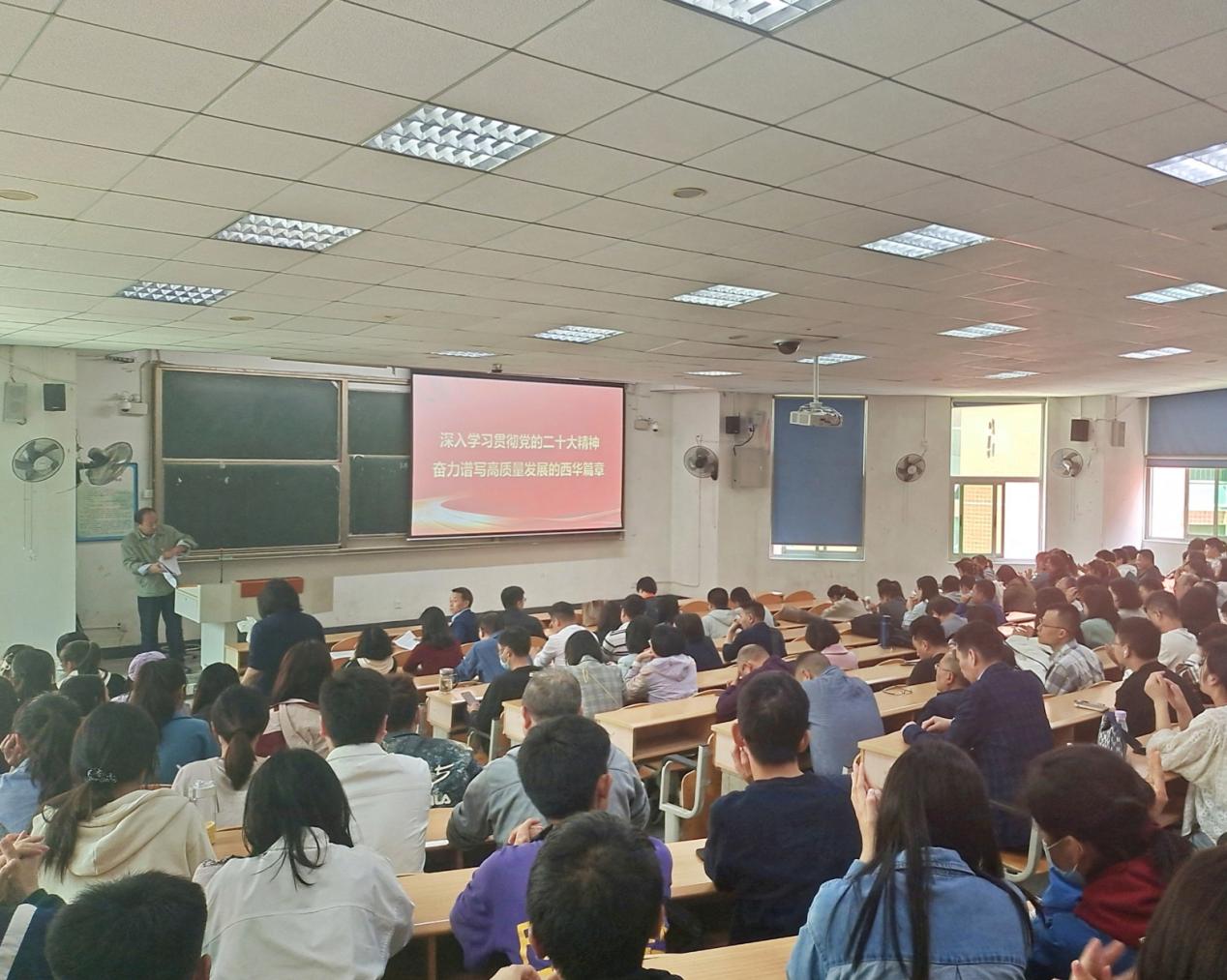 会上,裴峥引领所有师生党员同志深入贯彻学习党的二十大精神,并指出全体党员要切实将思想和认识统一到学校要求上来,以实际行动坚定拥护“两个确立”、增强“四个意识”、坚定“四个自信”,坚持做到“两个维护”,为助推学院高质量发展,奋力谱写高质量发展的西华篇章贡献自己的力量。