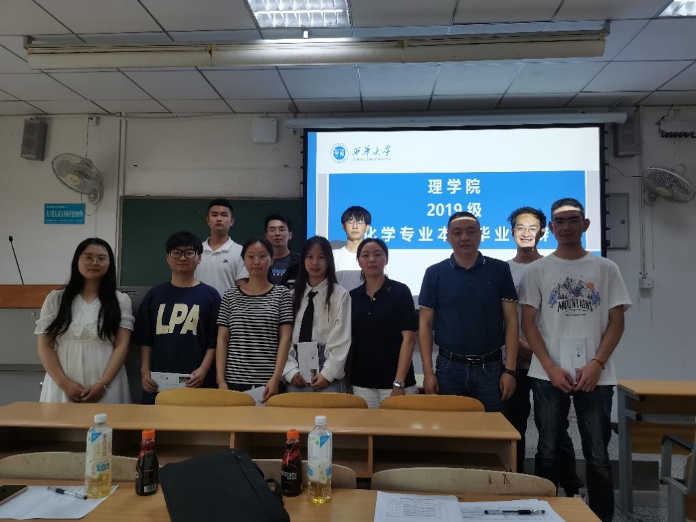 答辩中,每位毕业生围绕选题背景、实验结论及分析等进行讲解。答辩评委针对答辩内容进行提问,并提出针对性的修改意见。答辩后,每位毕业生收到一封来自全体化学系老师的信:希望在新的人生征途中继续发挥化学人吃苦耐劳、刻苦专研的精神,为祖国和社会贡献“西华力量”。