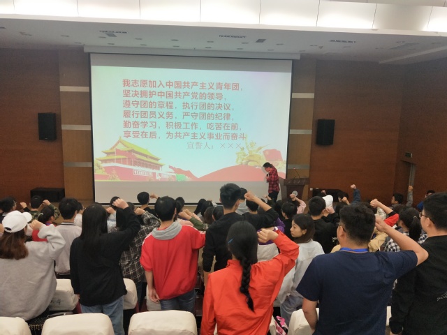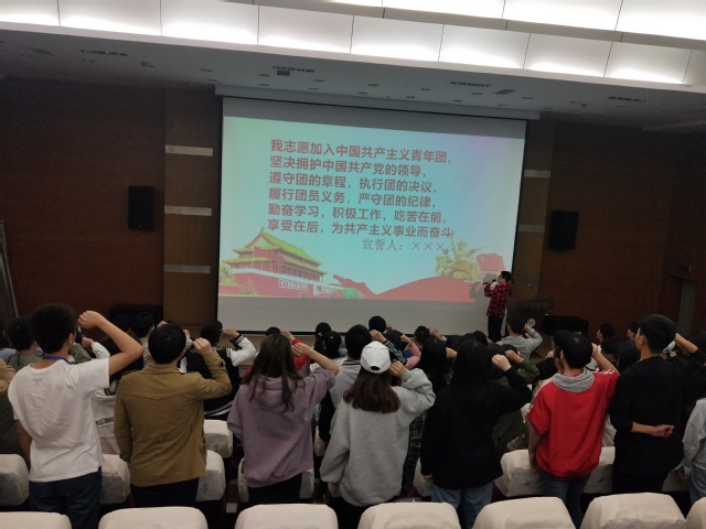 大会第一项,全体起立唱响团歌,从洪亮的歌声中可以感受到同学们的热情与责任。紧接着,同学们观看了视频《信中国》,视频中展现了在五四运动期间爱国青年的满腔热血和抱负祖国的决心,这激励着我们要做追梦人,不放弃理想与信念,为祖国的建设添砖加瓦。大会第二项,学生会主席唐万勇向同学们表达了自己的想法,他说到,新时代青年不应该浪费光阴,虚度韶华,应趁青春努力在硬实力上巩固,在软实力上充盈,做一个有实力有梦想可以传承五四精神的新青年。大会第三项,党校班长杨刁针对即将开始的第四十二期党校培训强调如何端正入党动机,他说到,党的根本理念是密切联系群众,只有认真学习马克思列宁主义思想,认真对待社会实践才可以净化心灵,唯有这样才可以端正入党动机。在团日活动的最后,同学们观看了以“仪式教育”为主题的团日活动视频,进一步升华了大会主题。