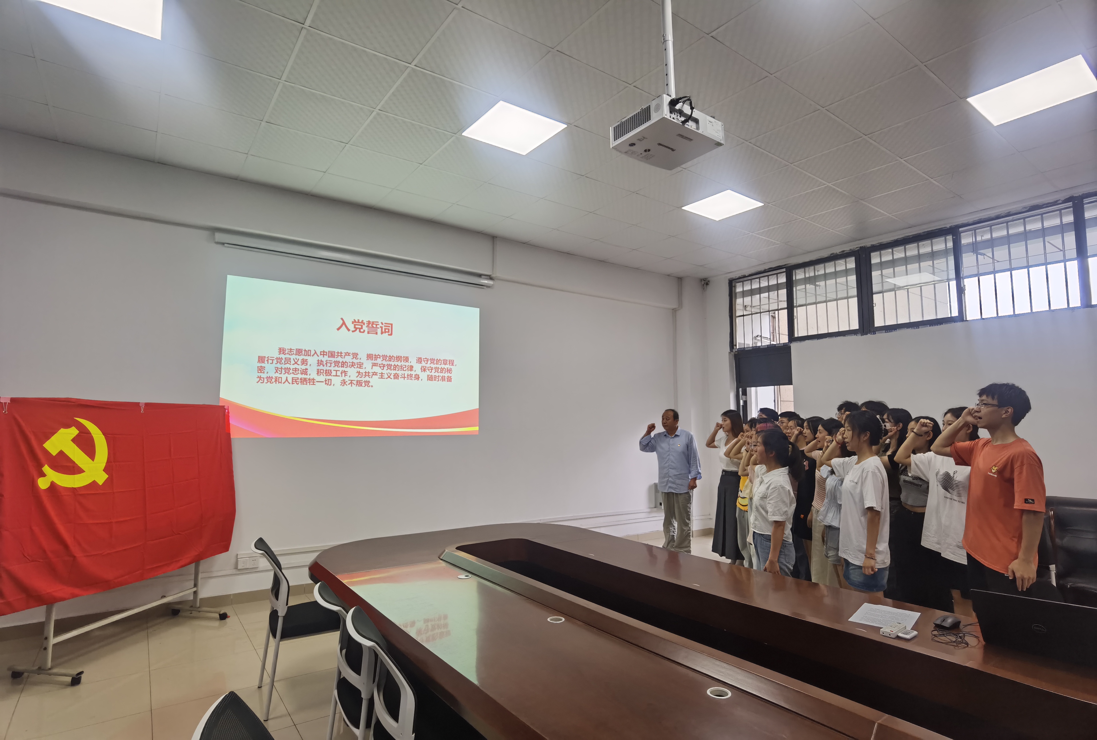 为进一步教育引导新发展党员铭记入党初心、强化党员意识、坚定理想信念,充分发挥党员先锋模范作用,7月3日下午16:00,伟德国际1946党委在2B408会议室开展新发展党员集体入党宣誓仪式,学院党委书记裴峥、党委副书记兼纪委书记周川、专职组织员王燕晶及新发展的19名党员参加仪式。