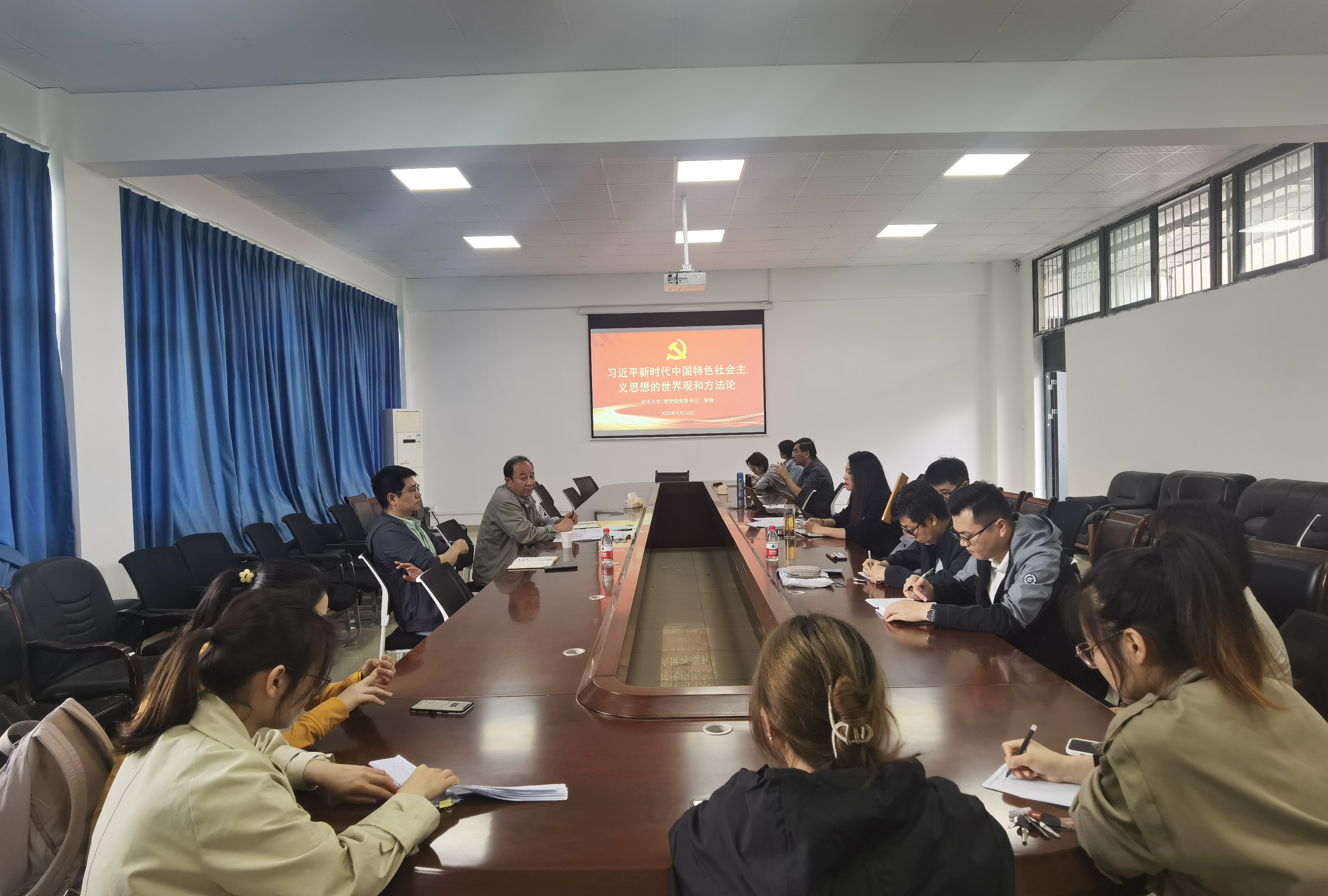 随后,裴峥以“习近平新时代中国特色社会主义思想的世界观和方法论”为题为与会人员上了一堂党课。他指出:科学的世界观和方法论是我们研究问题、解决问题的“总钥匙”,要把开展主题教育同学院中心工作结合起来,切实把主题教育成果转化为推动学院高质量发展的成效。