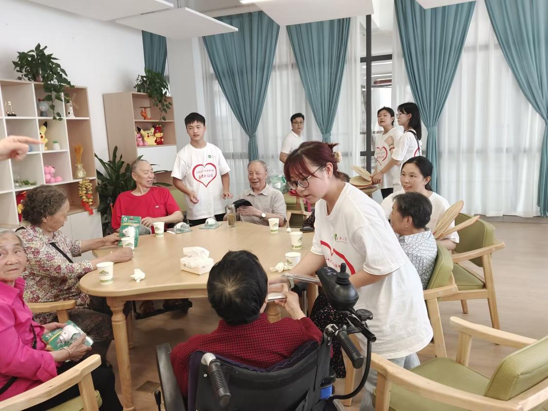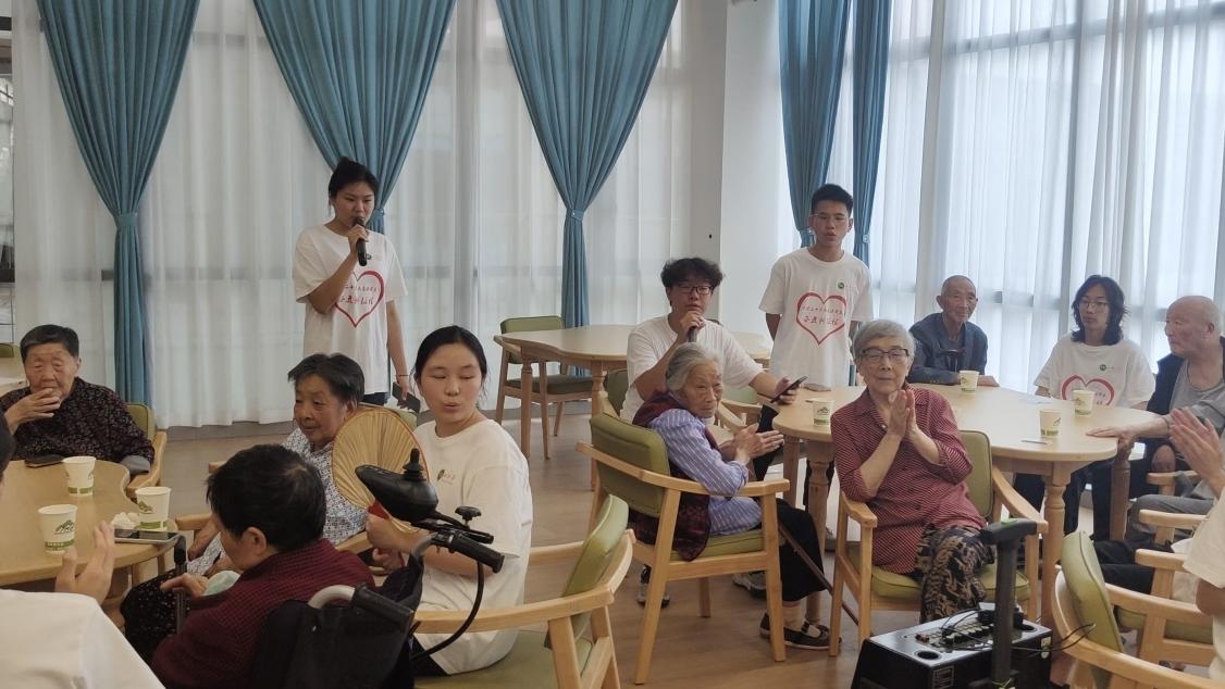 实践队员在养老院负责人的带领下,参观老人生活场所,聆听老人们的生活状况,并制定了详细的志愿服务活动。实践队员们纷纷拿出自己的看家本领,根据老人的兴趣爱好,有的为老人们表演歌曲、书法等才艺,有的为爷爷奶奶剪指甲、梳头发、按摩,有的陪老人们聊天、下棋、做手工……大厅里面瞬间热热闹闹的,“小朋友”与“大朋友”手拉着手,欢声笑语不断,每个人的脸上都洋溢着灿烂的笑容。其中,来自遂宁的一对伴侣任忠芳奶奶和蔡玉福爷爷,他们一位是兢兢业业的人民教师,一位是甘于奉献的抗美援朝老兵,他们分享了自己丰富的人生经历,高度肯定了中国共产党带领中国人民从富起来到强起来的伟大成果,给予实践队员很大的教育和启迪。实践过程中,同学们与老人合唱《唱支山歌给党听》《歌唱祖国》《东方红》《我和我的祖国》等红色歌曲。活动临近结束,蔡爷爷动情地说:“感谢伟德官网的同学们利用暑假来看望我们,祝你们学习进步,天天上进”。最后,实践队员们与老人们拍下了珍贵的活动全家福。